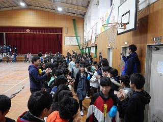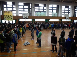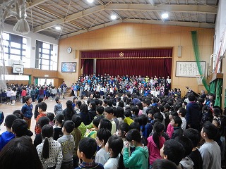 最後にみんなで全校合唱で「よろこびの歌」「ひとつのこと」を歌い,6年生の退場を見送りました。松尾小学校の子どもたち全員の気持ちがひとつになった,とても良い送る会になりました。
