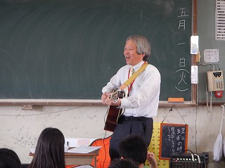 算数で分度器の学習が始まります。そこで毎年恒例の校長先生作詞作曲の「角はかりたい」の歌をみんなで歌いながら,分度器の使い方のポイントを確認しました。「分度器の中心を〜♪」と楽しく歌いながら,これからしっかり分度器の使い方をマスターしていきたいと思います。