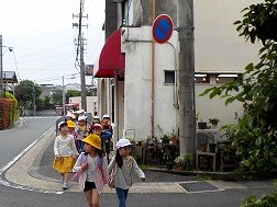 天候が心配でしたが,予定通り嵐山東公園へ「春みつけ」に行きました。交通安全に気を付けながら,歩いていきました。公園に向かうまでにも,たくさん春を感じられるものを見つけることができました。