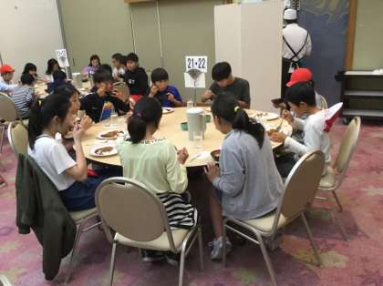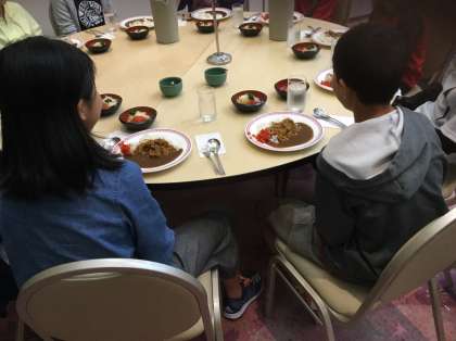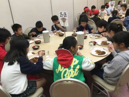 11時,とうとうホテルでの最後の食事となりました。最後は,定番のカレーです。子ども達にとっては少し辛いカレーですが,あっという間に食べ終わり,「おかわりはあるんですか。」の声が・・・。残念ながらございません。この後は,退館式です。
