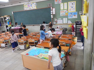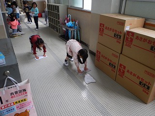 いつもお手伝いに来てくれている6年生は,修学旅行に出かけているので,自分達でもがんばってお掃除をしています。ぞうきんをギュッとしぼるのも上手になってきて,教室や廊下,机などいろいろなところをきれいにしています。
