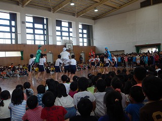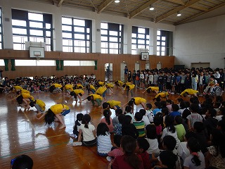 5年生と6年生は,昨年運動会で取り組んだ「ソーラン節」や「騎馬戦」の様子を交えて出し物をしました。後ひと月足らずで,1年生にとっては小学校で初めての『運動会』も控えています。