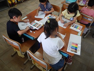 これから育てる「アサガオ」の種を観察しました。どんな形かな?色は?手ざわりは?と,一生懸命観察して絵を描きました。この種を植えて,アサガオの花がきれいに大きく咲くように,いっぱいお世話をしていきたいと思います。