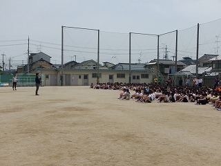 今回は地震が起きた場合の避難訓練をしました。地震が起きた場合の行動や避難の仕方をみんなで確かめてから,避難訓練をしました。放送を良く聞き,みんなスムーズに避難ができました。