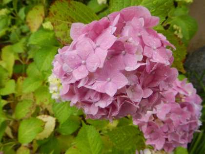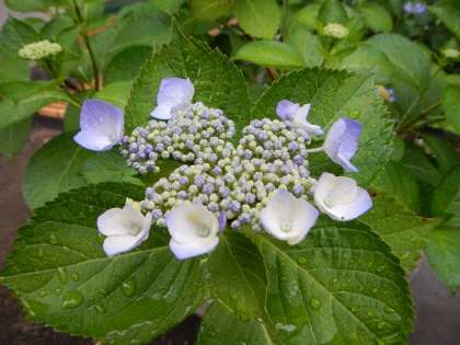 今日は久しぶりに雨が降りました。雨が降ると,あじさいの花が濡れて,いつも以上に元気に見えます。