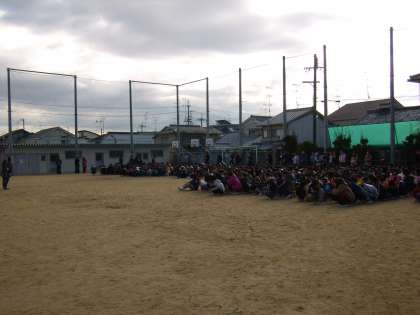午前9時50分,西京区全域で震度6強のゆれを観測し,地震発生後,余震が頻発し,学校では本震により家庭科室から出火したという想定で避難訓練が行われました。教室で「安全ノート」などで地震の恐ろしさと,その後の火災等の危険について学習し,地震が発生したときの避難の方法を体験しました。そして,家庭科室より出火したという放送を聞いて「おさない・はしらない・しゃべらない・もどらない・低学年優先」の「お・は・し・も・て」を合言葉に,整然と並んで5分49秒で無事に避難をすることができました。