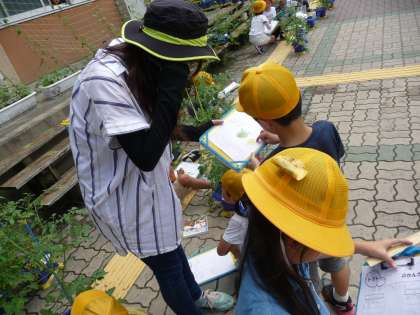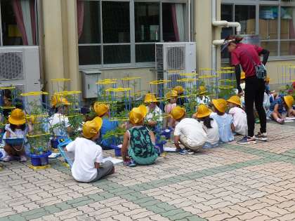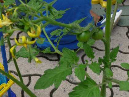 子どもたちが育てているトマトも、いつの間にやら大きく育っていました。