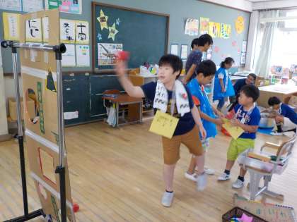 夏祭りには職員室にいらっしゃる先生方にも招待状を出し,遊びに来てもらいました。