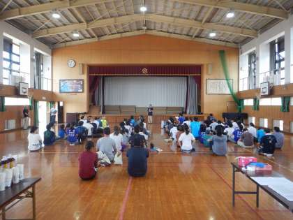 便きょう会の方,松尾小学校PTAのみなさん,地域の方々,そして子ども達が,続々と体育館に集まりました。