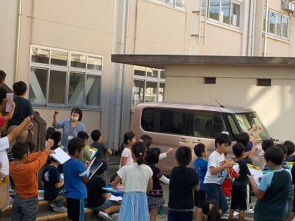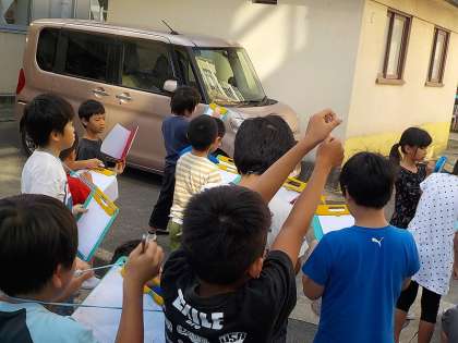 授業で学習したこぶしを使った高さの図り方や,目印をもとにしっかりと観察していました。