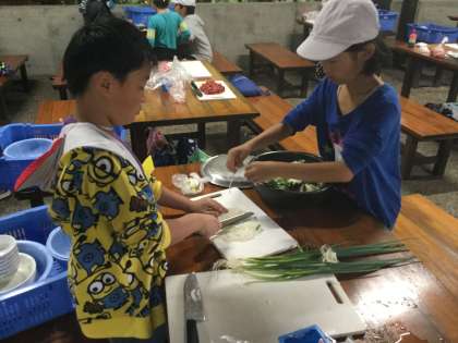 みんなで協力して、食材を洗ったり切ったりしています。