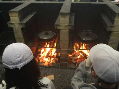 しかし、どのグループも次第に炎が燃え上がり、順番に美味しそうなすき焼き風煮が完成しました。
