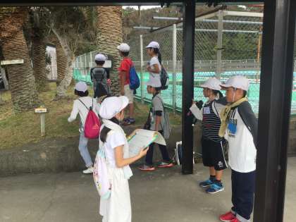 グループごとにポイントにある問題を解いていきます。「あそこにあったぞ。」「5番が見つからないぞ。」と、いろいろな声が聞こえてきて、とても楽しそうに活動しています。