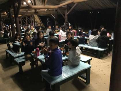 この後は、待ちに待ったキャンプファイヤーですが、雨が少し降っているので、プレイホールで行います