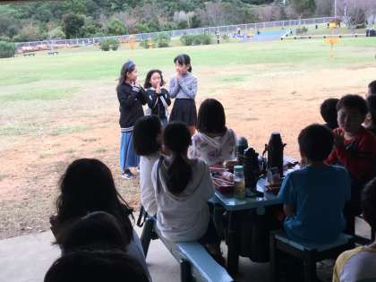 外は、今までで一番寒く、みんな震えながら食べていました。
