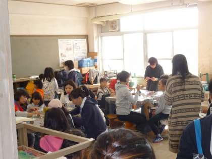 図工室では,ガールスカウトの方がフェイスペインティングを