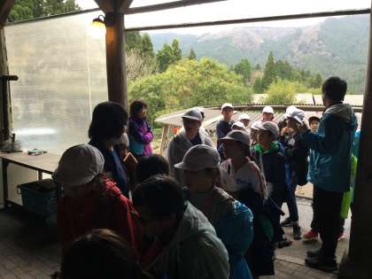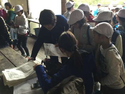 ゴール地点に、オリエンテーリングを終えたグループが次々とやって来ました。順番にチェックを受けています。予定通りみんなゴールできました。どのグループが優勝するのか、この後のお楽しみです。