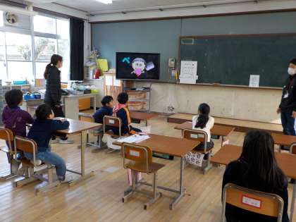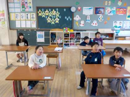 6くみでは,毎週水曜日のフッ化物洗口の後に「あいうべ体操」をしています。