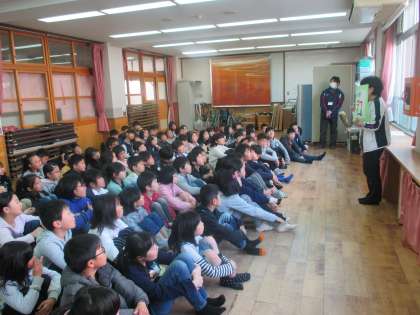 始まってすぐ,学年集会をしました。学年集会では学年目標や4年生の行事などを話しました。