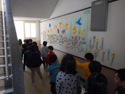 文字探しにあわせて,学校にはどんなところがあるのかも少し確かめました。初めて見る場所にみんなの目がキラキラとしていました。