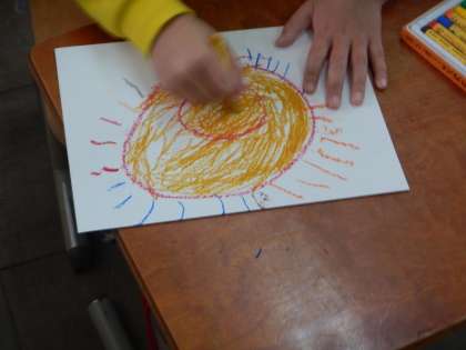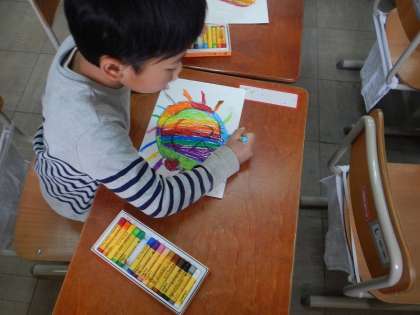 図工の学習で,おひさまをかきました。いろいろな色を使って,カラフルでとてもかわいいおひさまがいっぱいでした。