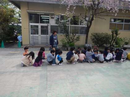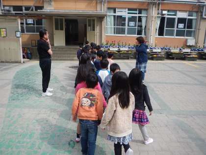 今日は名前の順番に並ぶ練習をしました。次は・・・こっちが前!と中庭で場所を変えながら,何度も並ぶ練習をしました。だんだんと声を出さずに並べるようになってきました。