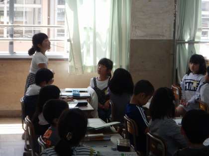 国語「ふきのとう」の学習で,どんな工夫をして音読すればよいのかを考えました。隣の席の子と,こうしたらどうかな?と相談した後,見つけた工夫をみんなの前で発表しました。工夫をして音読をすると,お話がより身近に感じられます。