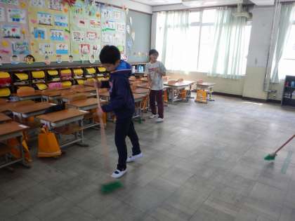 掃除時間,誰もいなくなった1年生の教室を,6年生が黙々と掃除をしていきます。自分たちのひざぐらいの高さしかない机を,腰をかがめながら運びます。大変な掃除だけど,6年生の顔は何だか誇らしげで素敵でした。