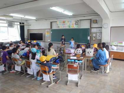いつも集団登校をしている自分たちの班の集合場所や時刻,登下校中の安全について確かめました。1年生は,初めての町別児童集会です。高学年のお兄ちゃん,お姉ちゃんにお手伝いをしてもらいながら,しっかり確認をした後は,みんなで下校をしました。