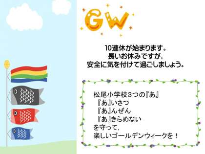 そして,明日から10連休が始まります。安全に気を付けて過ごしてください。