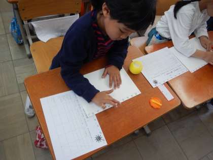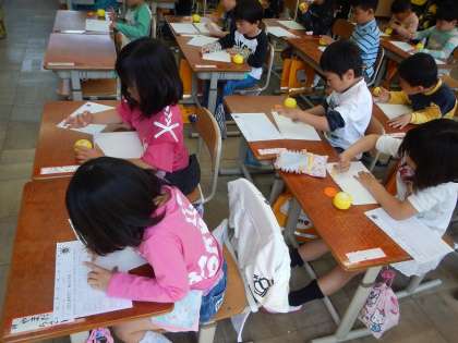 とても真剣な表情で,がんばっていましたが,みんな上手に貼ることができていました。