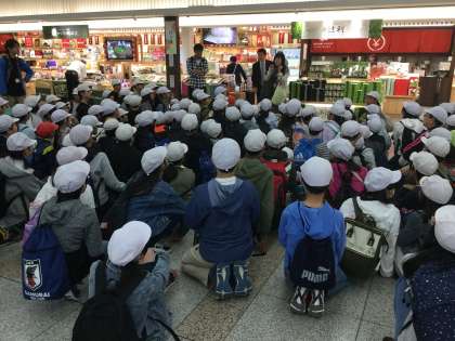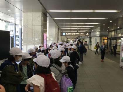 京都駅に着き、トイレをすませて、いよいよ新幹線に乗ります。「早く新幹線に乗りたい。」とみんな思っていますが、乗車予定の新幹線の到着まで、まだ時間が・・・。