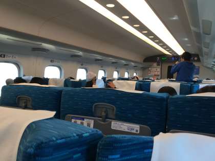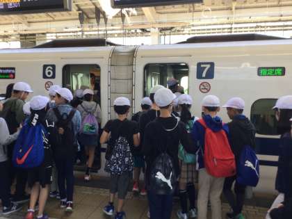 待ちに待った新幹線が到着しました。「新幹線に乗るの初めて。」「すごい。」うれしそうな声が聞こえてきて、みんな気分は最高潮です。