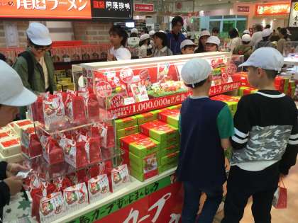 福山SAに着き、お楽しみの買い物タイムです。色々な種類のおみやげがあって、どれにしようかみんな悩んでいます。倉敷でもおみやげを買うので、ここでどのような物をどれだけ買うか、決断に迫られています。
