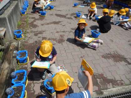 あさがおの芽の観察をしました。連日の暖かさで,例年よりも早く?成長中のあさがおですが,子どもたちは早く花が咲いてほしいと願っているようです。そんなことを考えながら,大きさや色,形などをよく見て,しっかり観察していました。