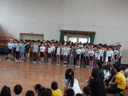 最後に6年生は,昨年度運動会で行った騎馬戦をテーマに,発表を行いました。迫力のある騎馬戦と体育館中に響き渡る声は,さすが6年生でした。