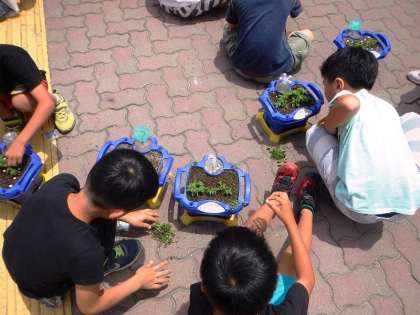 ミニトマトが元気に育ってきています。今日は,出てきた芽を間引いて,肥料をやりました。「何かかわいそう・・・。」と2年生の子ども達は間引きをするのがとても残念そうでした。その後,前から観察を続けていた,ナスやオクラなどの種を,それぞれのグループに分かれてまきました。ミニトマトと同じように,元気な芽がたくさん出てほしいと思います。
