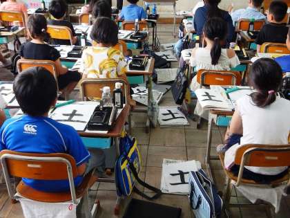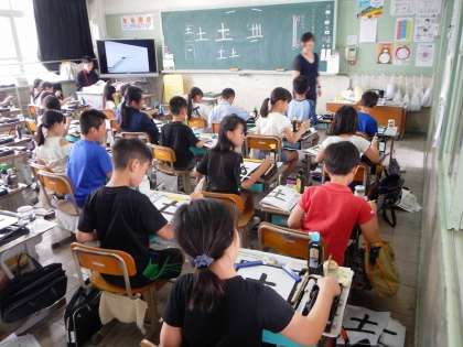 3年生になって始まった習字の学習ですが,一筆一筆ていねいに練習をしています。今回は,たて画の筆づかいに気を付けて書きました。始筆と終筆を意識して,ゆっくりゆっくりがんばっていました。