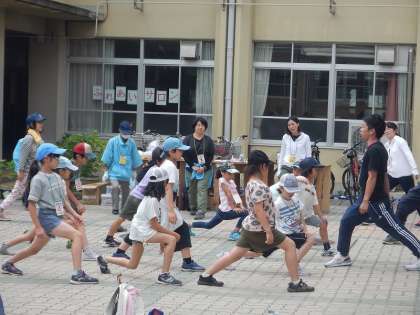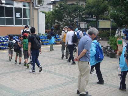 準備体操をしっかりして,いよいよ出発です。みんな元気に「歩こう会」スタートです。