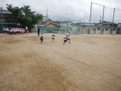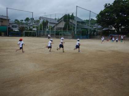 雨が上がったおかげで,玉入れの後,50m走も練習することができました。地面にラインが引いてなかったので,まっすぐ走れるか少し心配でしたが,ゴールのコーン目指してみんな真っ直ぐ,全力で走っていました。
