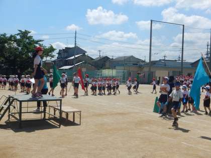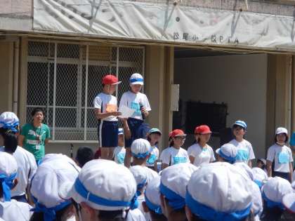 閉会式では,得点発表や優勝旗のもらい方等を練習しました。今日の練習では,代表で白組の団長が優勝旗をもらいました。さて,本番では何色のもとに優勝旗がやってくるのか!?楽しみですね。