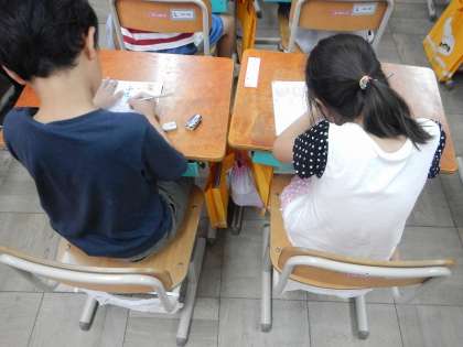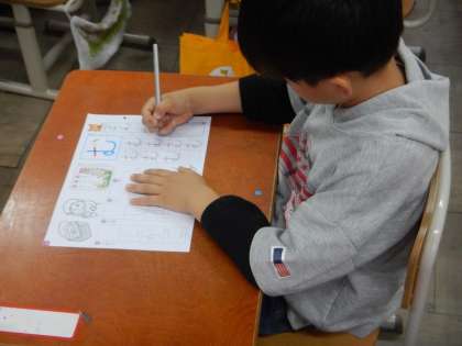 平がなの練習を毎日がんばっています。今日は「む」です。バランスがとても難しいようで,みんなで思わず「む・むむ・むむむ・・」と声を出しながら,練習をがんばっていました。