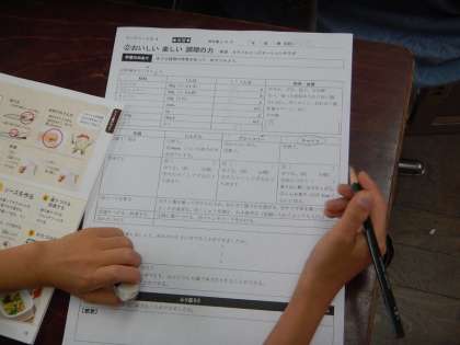 家庭科の学習で,次に行う調理実習の計画を立てました。グループの人数で,材料の量を考えたり,グループの中で担当する野菜を決めたりと,相談をしました。みんなで協力しながら,「ゆでる」調理の仕方を覚え,おいしいサラダを作りたいと思います。