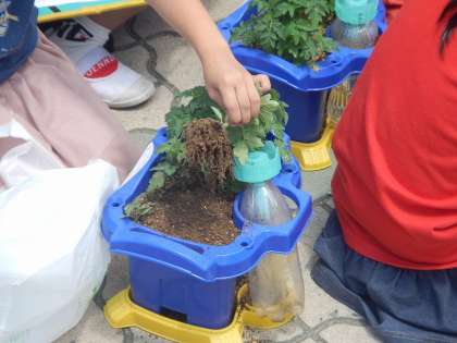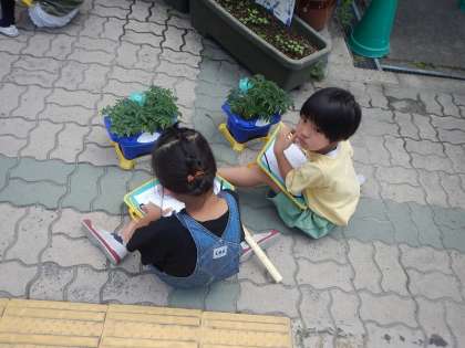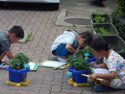 ミニトマトがどんどん大きく生長中!今回は観察をした後に,土の栄養を集中させるために,間引きをしました。太陽の日差しをいっぱい受けた,甘くておいしいミニトマトが1日でも早くできることを楽しみに,これからもたっぷり水やりをして,お世話をしていきたいと思います。
