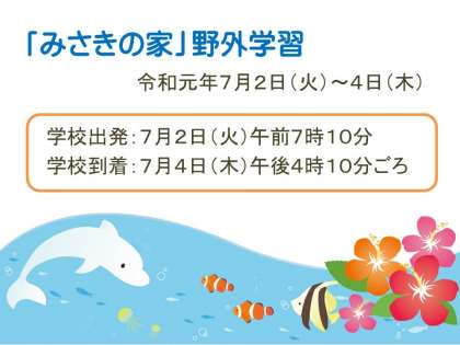 いつもよりも朝の登校時間が早いですが,朝食をしっかり食べて,近くの友達と一緒に安全に気を付けて登校しましょう。天候が少し心配ですが,4年生みんなのパワーで,しっかり楽しんできたいと思います。今日は明日に備えて,ゆっくり休みましょう。