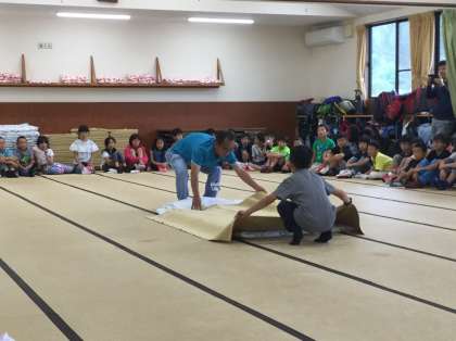 「真ん中でやってみたい人?」と聞かれ、手をあげる人が多く、やる気いっぱいです。