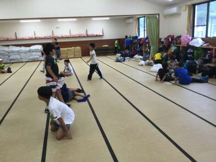 みんなかなり眠たそうですが、みんなで協力して毛布やシーツをたたみ、次の活動準備をしました。