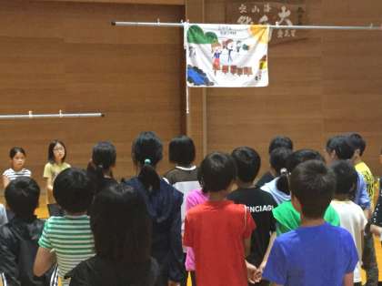 お世話になったみさきの家の所員の方々にお礼を言った後、校歌を歌いながら、校旗をおろしました。