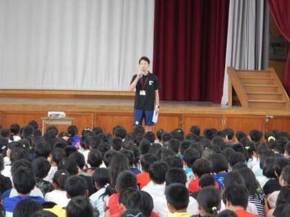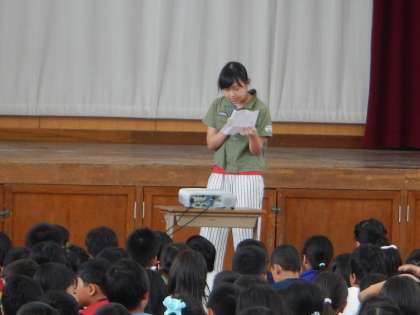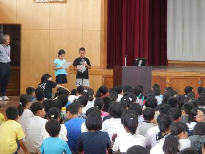 また,今週も3年生と5・6年生が行う朝鮮第二初級学校との交流も含めたいきいきタイムの話や,環境委員会からベルマークのお礼とアルミ缶回収のお知らせの話がありました。