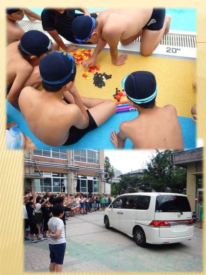 先週は雨で予定していた交流ができず,今週に延期になりましたが,今日は天候も良く,初級学校の同じ学年の友達とプールで交流することができました。一緒に泳いだり,貨物列車などの遊びも楽しみました。短い時間ですが,久しぶりに会えた友達と楽しい時間を過ごすことができ,別れがさみしい6年生でした。